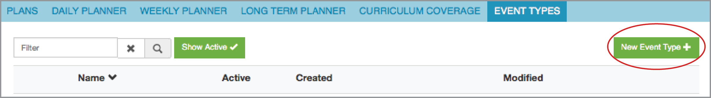 - Click Planning>Event Types from the menu bar at the top of the page.
