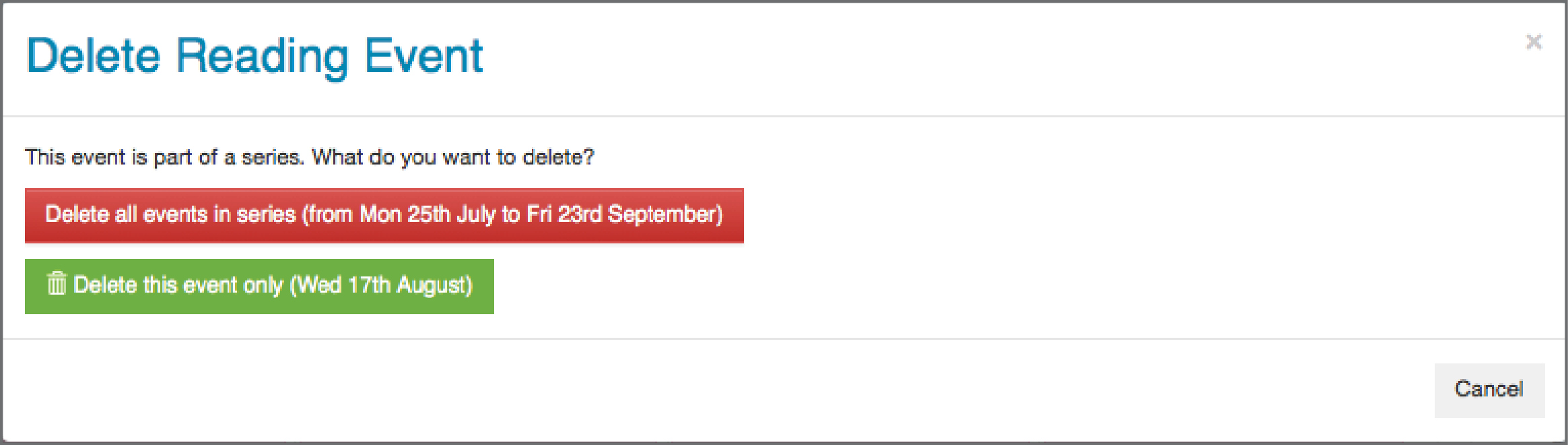 - Click on the event you wish to edit, which opens the Edit Event pop-up.