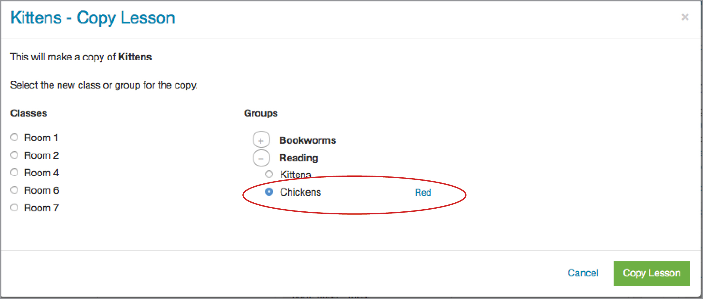 Then select a Class or Group you would like to copy your lesson to, change the Level if needed, then click Copy Lesson.