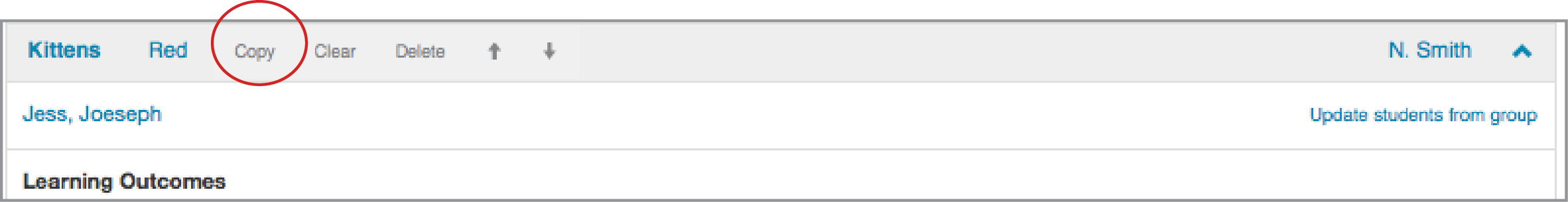To copy an individual Lesson within a week click the Copy button on the Lesson header.
