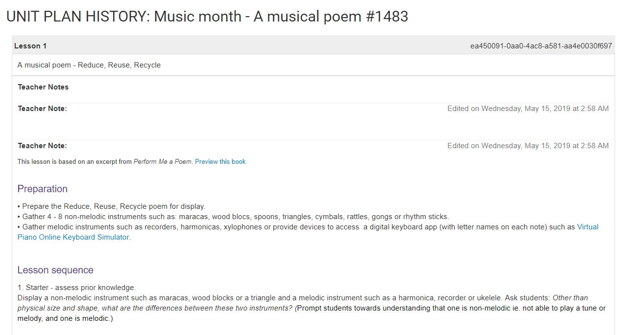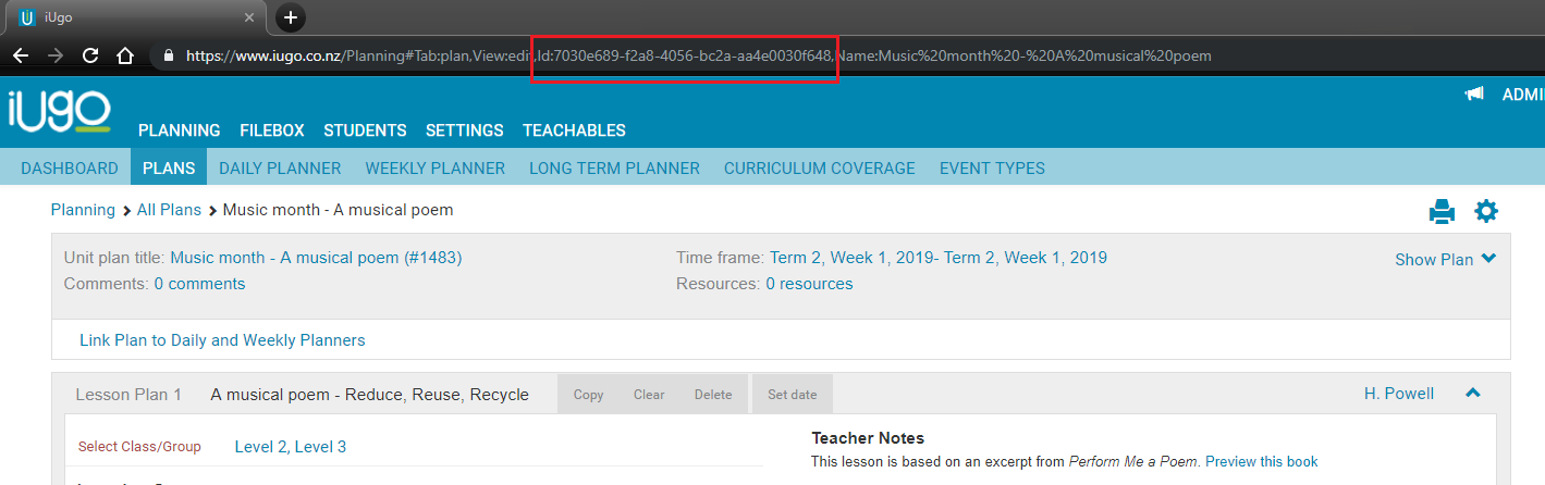 If a customer has accidentally deleted lesson or overwritten lesson content then the simplest way to retrieve this is to load the plan history. This is not currently assigned a user interface so you will need to use the below link to retrieve the history of a plan.