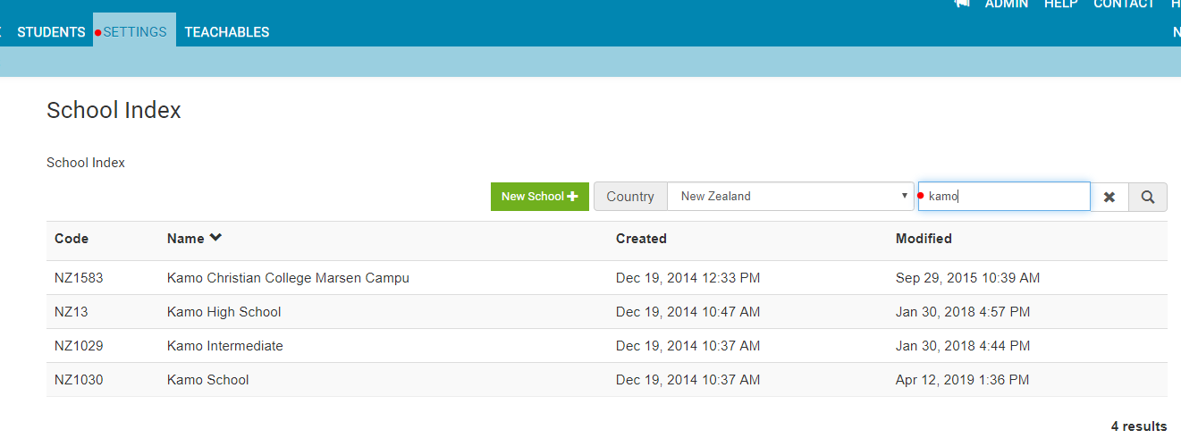 2. In the blue bar go to Settings and search the school name.