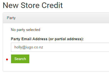 4. In the next page that loads - type in the email address for the account you wish to add the credit to then click the green search button.
