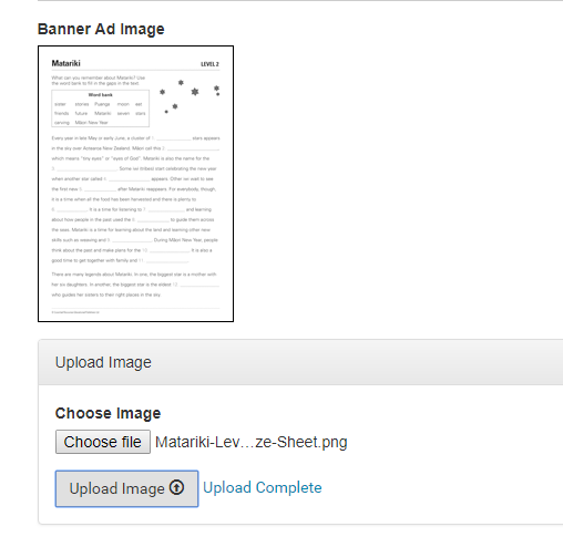 10. When you click save you will have the option to upload a banner image. Click upload to select a file from your computer then click upload (you will see the image appear).