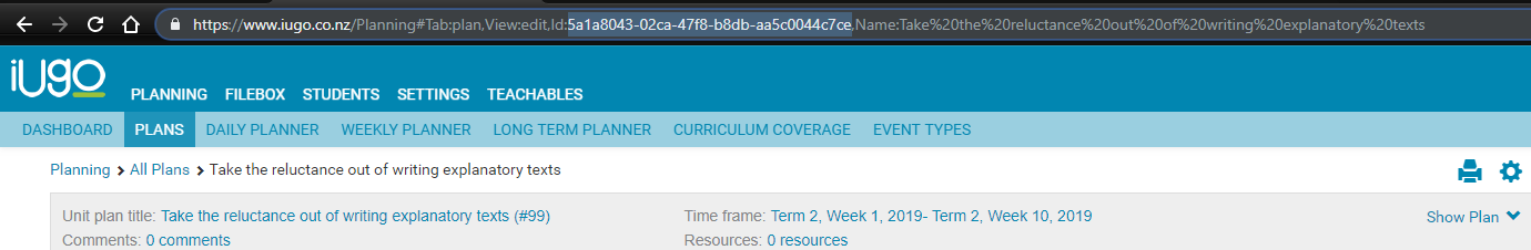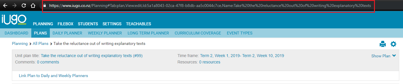 12. To retrieve the plan ID - go into the unit plan in the ER Template School that you would like users to download. In the URL you should see the below.