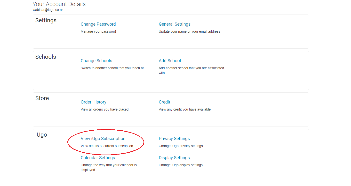 2. In your account details scroll to iUgo and select View iUgo Subscription which will open your subscription details.