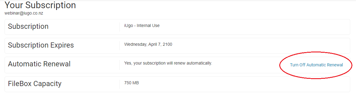 3. In your subscription details select Turn Off Automatic Renewal, at any stage you can switch automatic renewal back on. If your subscription lapses you can still purchase another subscription and will not lose any historic planning created in your account.
