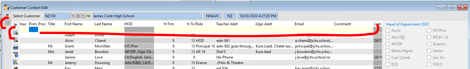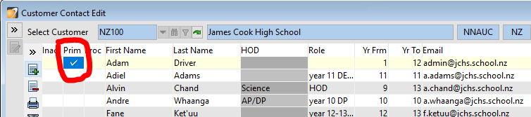 - To mark as primary contact click into the Prim box and a tick will appear.