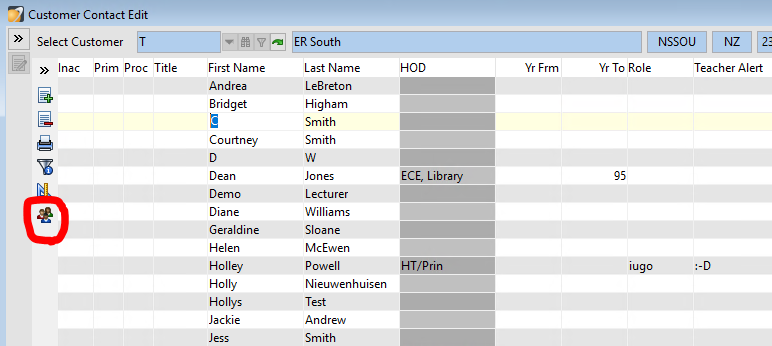- To merge a contact, select one contact, you should see it faintly highlighted yellow. Then click on the 'merge teachers' icon to the left of the window.
