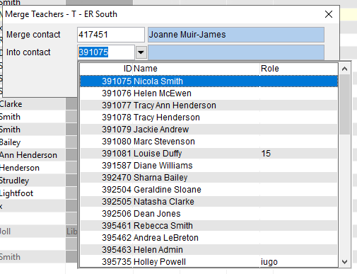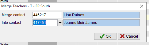 You will get a pop-up asking which teacher the contact you selected you be merged into then click OK.
