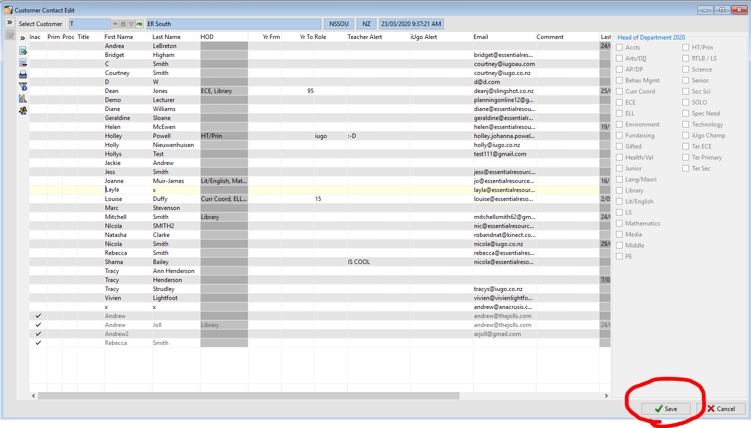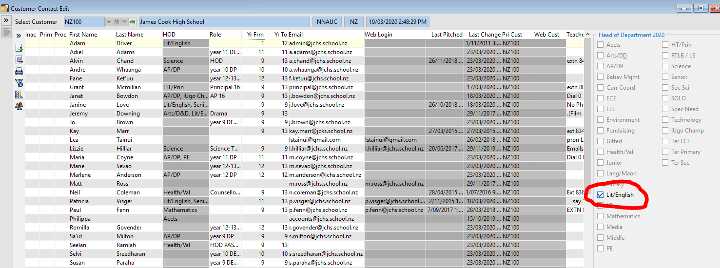 - To add a subject to a contact, select the contact name then tick the box next to the subject name in the head of departments section on the right hand side.