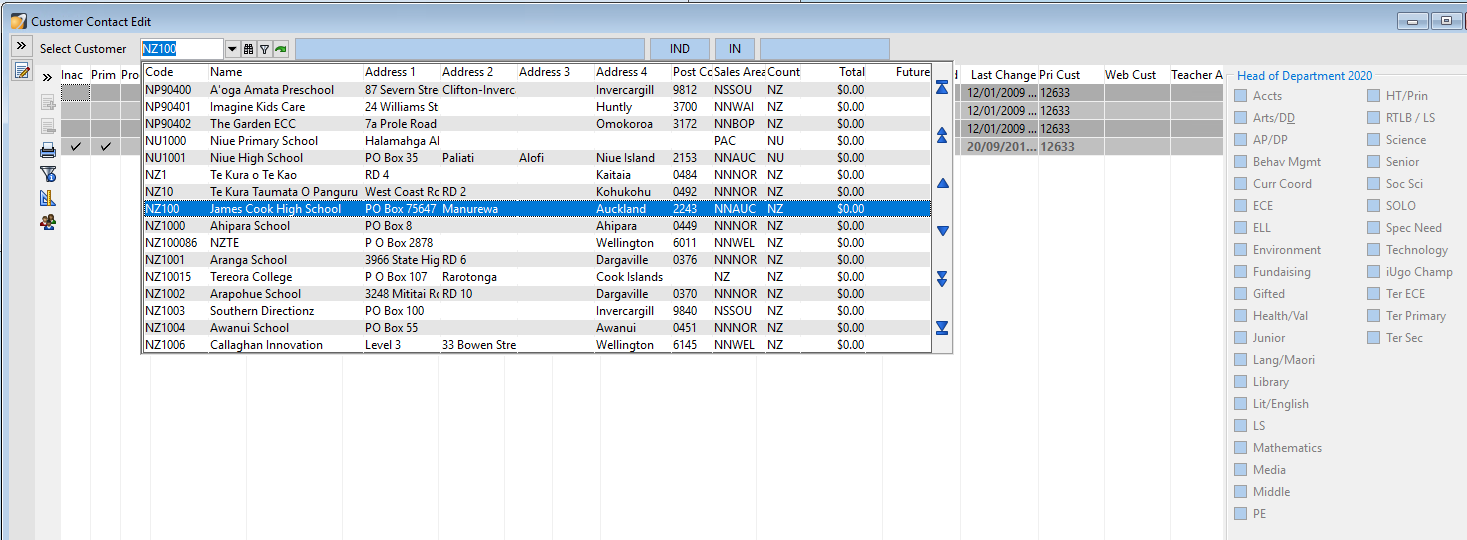 Open and the contact form, search the school number to bring up their details.