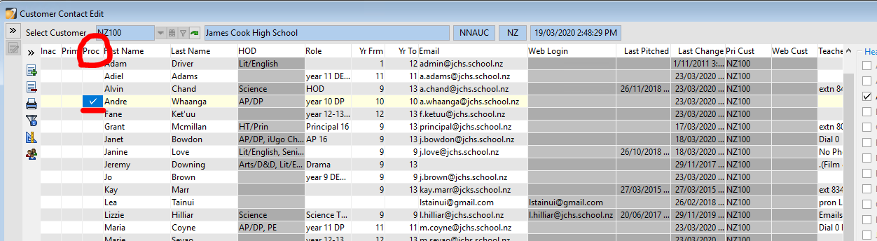 Once you have finished with all your additions, changes, merges etc, as a final checkover go through each contact and mark them as 'Processed' when this is done a tick will display in this category 'Proc'.