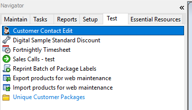 Go to the navigator to the left of accredo, select the test tab, then click on Customer Contact Edit.