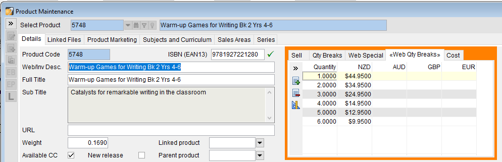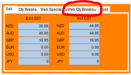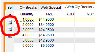 4. In the pricing section of the product there is a menu item called <web Qty Breaks> open this section.