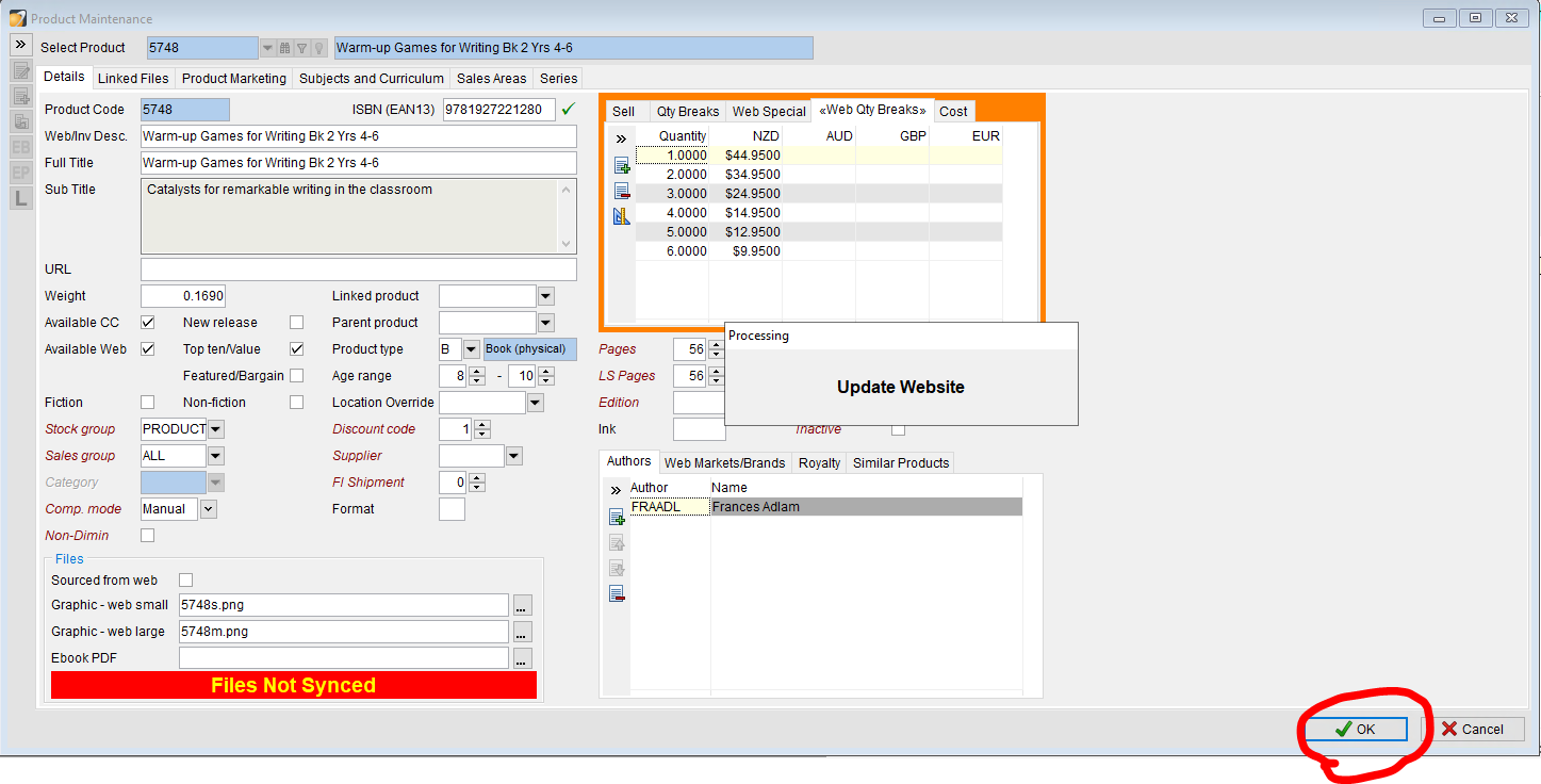 5. Start typing in the price brackets in this order (if the book has a main price different to $44.95 please reach out to Nicola before changing).