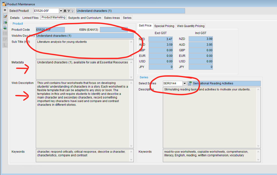 3.950.00 - If sharing on ER sites create PRODUCT TYPE as E (Ebook) rather than U (Eunit), otherwise the other Eunits will bleed through to ER site even though they are not linked to the market. You will need to create a new product code linked to the same pdf and graphic files to do this.