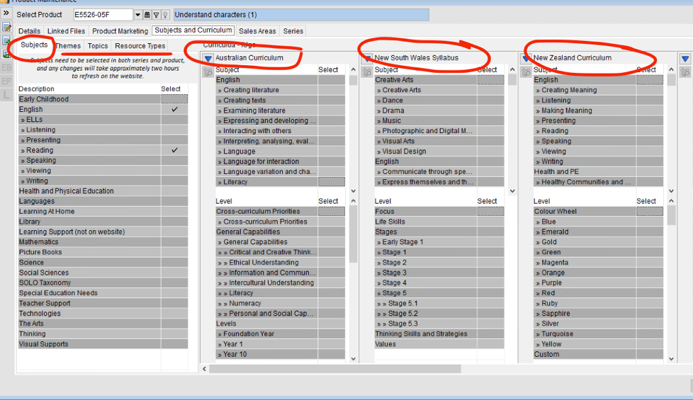 Add Subject for ER sites, Curriculums for each of the curriculums for products to show.