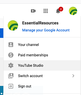 Click 'YouTube Studio' in the the right icon
