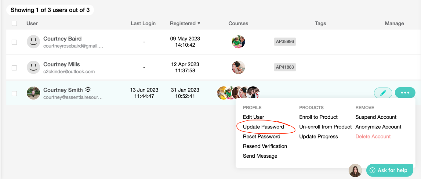 Add a simple password that you can give them over the phone, ie their first name 2023, ie Courtney2023, and save.